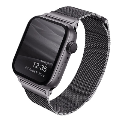 Элегантный ремешок изготовлен из нержавеющей стали, которая не окисляется и обладает высокой прочностью. Этот материал приятен на ощупь, не вызывает раздражения во время эксплуатации, а также не боится загрязнений и влаги. Плоская магнитная застежка с возможностью регулировки длины обеспечивает точное соответствие размерам руки и надежно фиксирует устройство на запястье, позволяя не беспокоиться об утере даже на занятиях спортом.