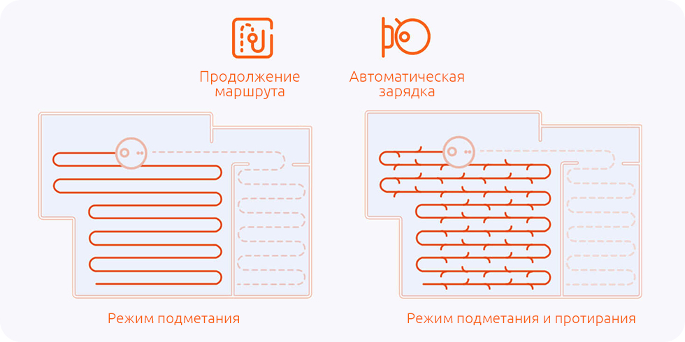 Во время уборки умный пылесос Mi ориентируется на выбранный режим и зонирование помещения, чтобы составить подходящий маршрут и постепенно пройтись везде, не проходясь дважды по одному месту.
