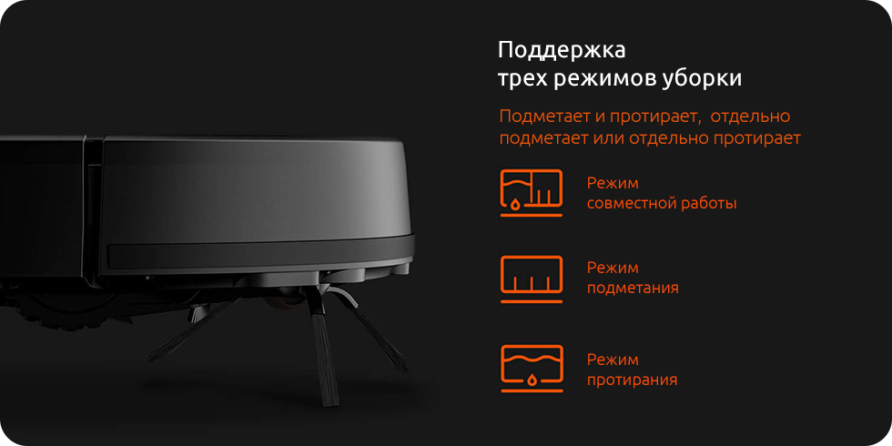 Специально для работы в режиме протирания полов используются особый маршрут движения пылесоса, повторяющий движения как при использовании швабры человеком. Пол не только очищается от пыли и грязи, но и приобретает первозданный блеск.